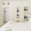 The apartment is fully equipped with all the necessary equipment and attention to details. Each room has a TV and a closet, and the comfortable kitchen features modern design. Our building is new and modern, built in 2018, and has a unique and stylish design.