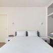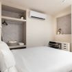 The apartment has one main bedroom with a double bed, as well as another open-space living room with a folded sofa bed for one person. Apartment has a working desk for your convenience. You also have adjustable living room table, which turns into a dining table. Fully equipped kitchen with all new appliances, including a small office-sized refrigerator, cooking plate, toaster oven, cooking and eating ware, kettle, and coffee machine.